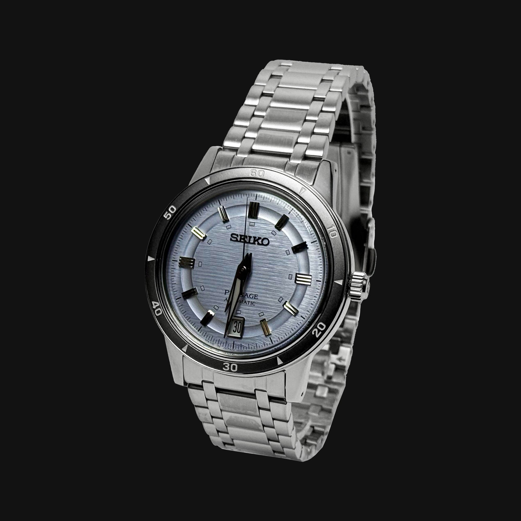 Une pièce sophistiquée à l’allure intemporelle. La SARY267 embarque le calibre 4R35 dans un boîtier acier de 39,5 mm, posé sur un bracelet assorti. Son cadran bleu glacé, subtilement texturé, apporte un jeu de reflets unique. Dotée d’un verre Hardlex et d’une fonction date, elle incarne l’élégance précise et minimaliste propre à Presage.