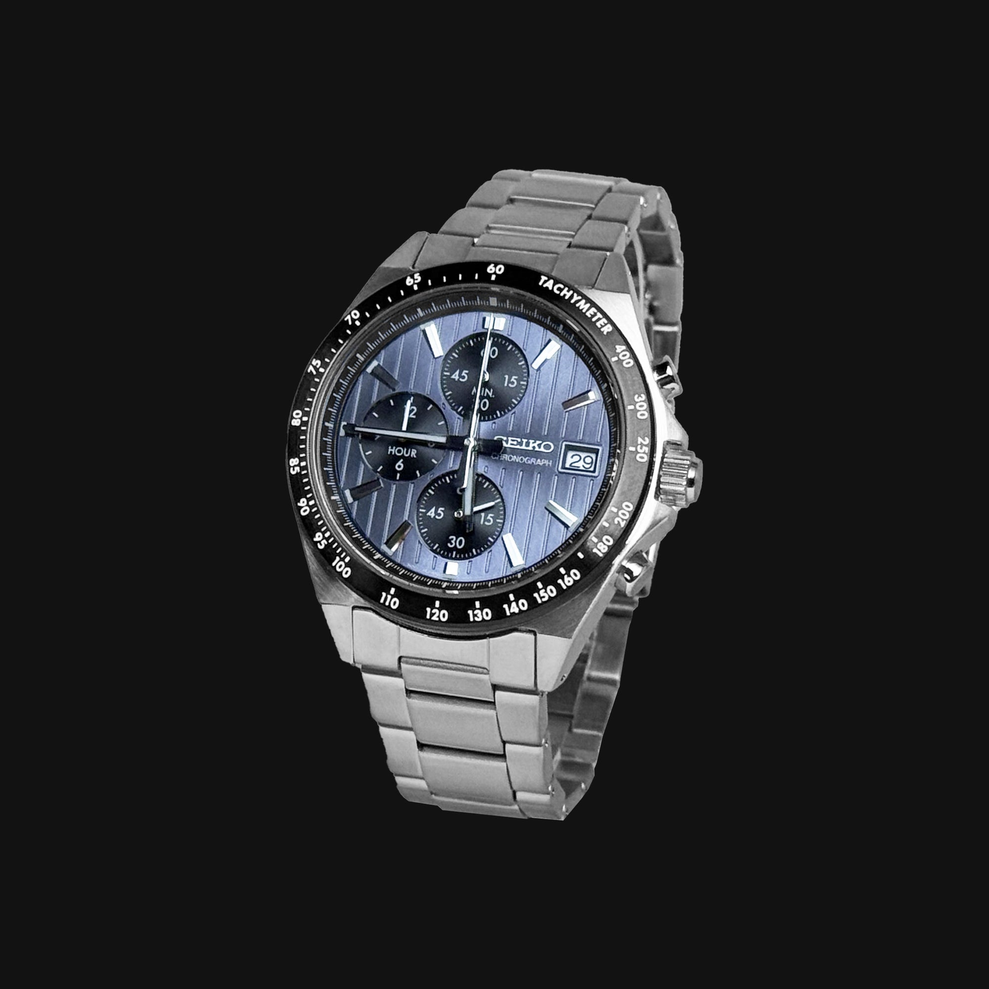La Seiko SBTR041 allie sophistication et technicité. Son cadran bleu-gris texturé et ses aiguilles luminescentes expriment un style affirmé. Propulsée par le calibre quartz 8T67, elle offre une chronométrie précise et un affichage de la date à 3 heures. Étanche à 100 m et protégée par un verre Hardlex, elle s’adresse aux amateurs de performances sobres et élégantes.